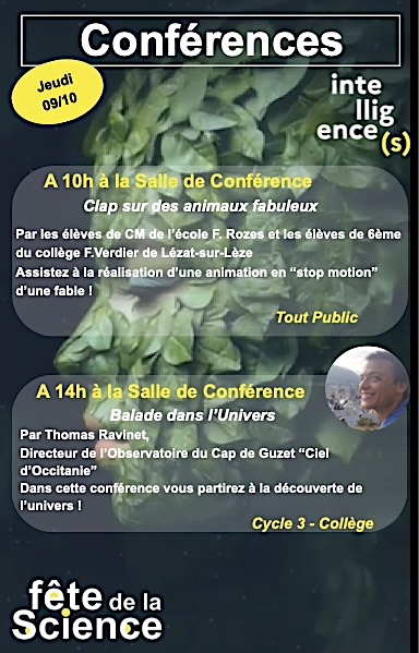 10H00 – Salle de conférence – « Clap sur des animaux fabuleux » Par les élèves de CM de l’école F. Rozes et les élèves de 6ième du collège F. Verdier de Lézat-sur-Lèze