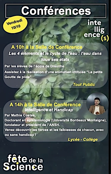 14H00 – Salle de conférence – « Intelligence et handicap » par Mathis Costes, Doctorant en épistémologie sur la thématique des troubles du neuro-développement (Université Bordeaux Montaigne)