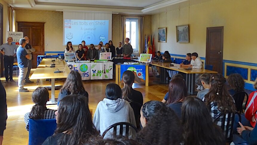 Mardi 30 septembre, 72 élèves en 4e, du collège Victor Hugo sont venus en mairie présenter à Marc Sanchez, maire le travail qu’ils ont réalisé dans le cadre de l’opération « Regards de géomètre ».