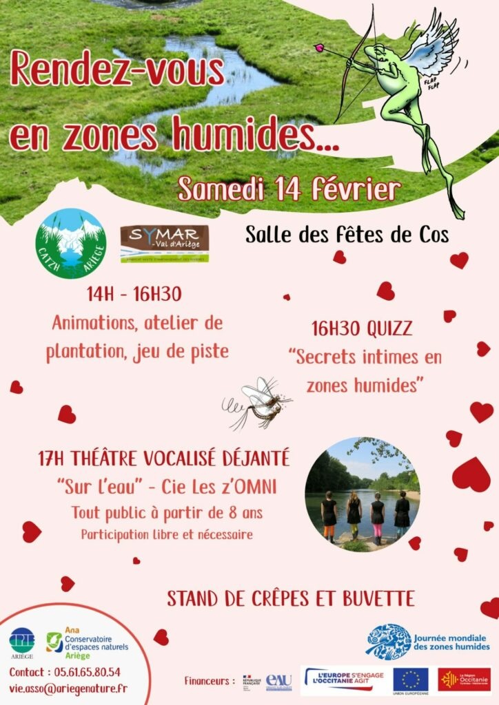 Au cours de cette journée, il y aura : un atelier participatif de plantations spéciales Zones humides (comment planter, que planter, pourquoi planter), un jeu de piste, un quizz avec lots à gagner et un spectacle avec la la compagnie les z’OMNI ! Sur l’eau” : un spectacle tout public à partir de 8 ans