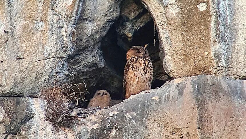 La nature s’invite une fois de plus au cœur de la cité comtale. C’est une nouvelle qui réjouira les amoureux de la faune sauvage : pour la deuxième année consécutive, un couple de Grand-Ducs d’Europe a choisi le rocher du château de Foix pour y établir son nid. Et cette année, la famille s’est agrandie — trois poussins déjà bien dodus ont vu le jour.